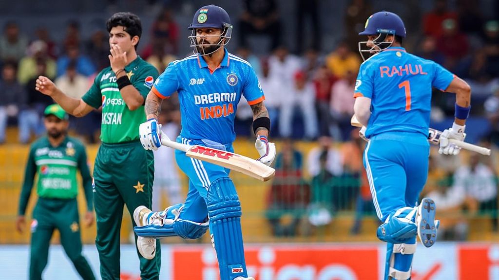 Indian batters Virat Kohli and KL Rahul run between the wickets during the Asia Cup match between India and Pakistan, at the R. Premadasa International Cricket Stadium in Colombo, Sri Lanka.Credit: PTI Photo